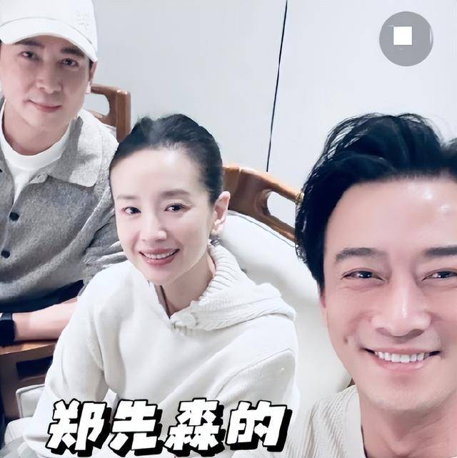 相比之下,45岁的董洁则显得稍微有些拘谨。她穿着一件简单的白色卫衣,挨着保剑锋和郑奇坐着。