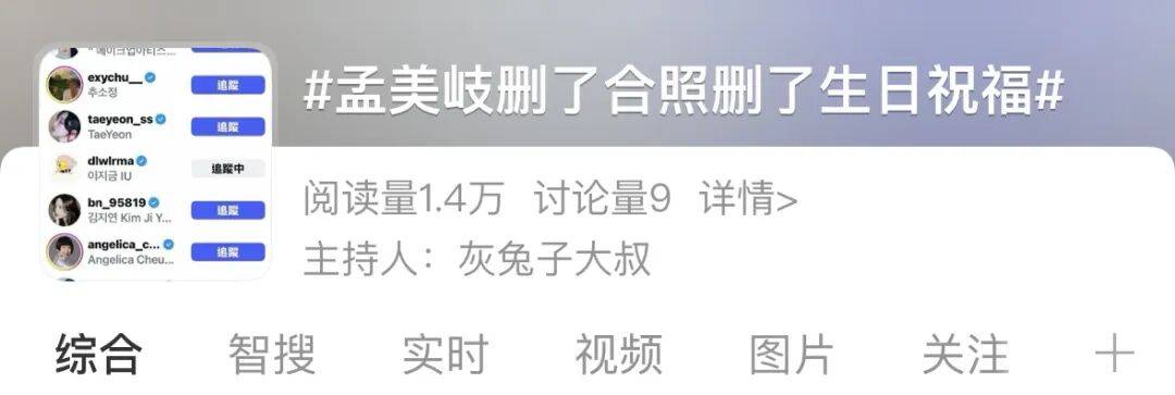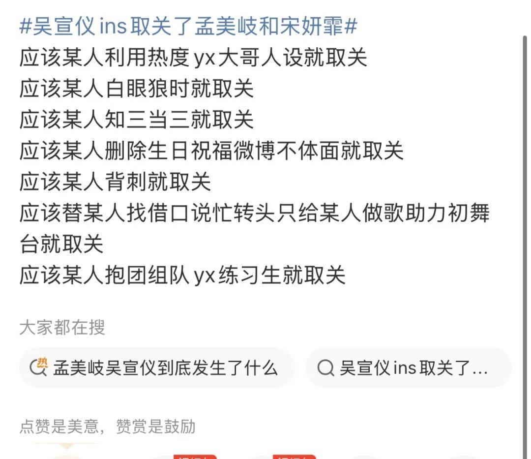 明明孟美岐都一年半没更新ins了,吴宣仪一取关,词条马上就出来了。