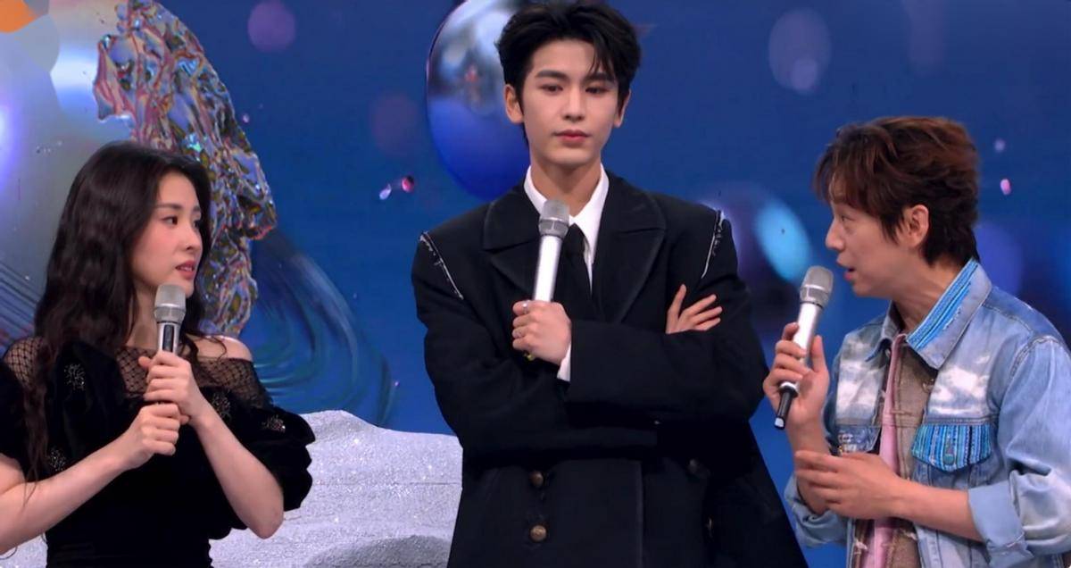 接下来的“万人迷换装秀”无疑是为张凌赫量身定制的环节。在其他嘉宾忙着换装跳舞时,张凌赫选择站在台上,表现得格外低调。主持人何炅调侃他站在原地像个“背景板”,但张凌赫显然不太能放开自己,毕竟他是靠颜值圈粉的流量明星。然而,当他换上白色西装,头发微卷,眼神坚定地走出时,全场顿时安静了两秒。其他嘉宾纷纷夸赞他帅气,评委赵磊也不断点头,李雪琴更是开启了“夸夸模式”。相比之下,辛云来几乎被张凌赫的光环所掩盖,他在台上简短地介绍了一下自己的造型,接下来便几乎没了镜头,成了安静的“背景板”。