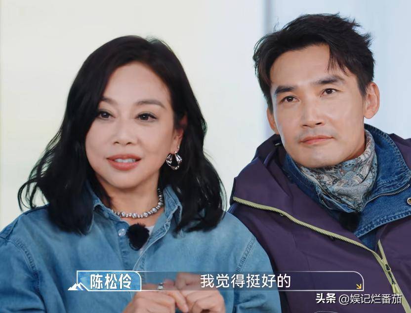 特别是当54岁的陈松伶和45岁的李琳在节目中相遇时,两人之间的年龄差距一下子显现出来。虽然节目组为陈松伶加了滤镜,但她的脸部肌肤细节仍然暴露无遗。即便如此,她的脖子部分依然可以看出皮肤松弛,尤其是她说话时,眼线和假睫毛的搭配更是让她显得有些“老巫婆”的感觉。而李琳尽管比陈松伶小九岁,整个人看起来却格外年轻,皮肤紧致,笑容灿烂,给人一种充满活力的感觉。相比之下,李琳的丈夫经超虽然比她小六岁,但看得出他已经开始有了些许眼角皱纹,但整体气质依旧不减。