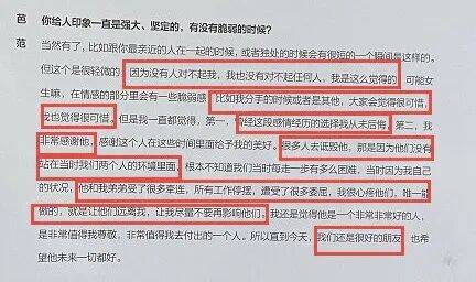 她也坦言,分手确实可惜,“大家会觉得很可惜,我也觉得很可惜,但是我一直都觉得,曾经这段感情经历的选择我从未后悔”。