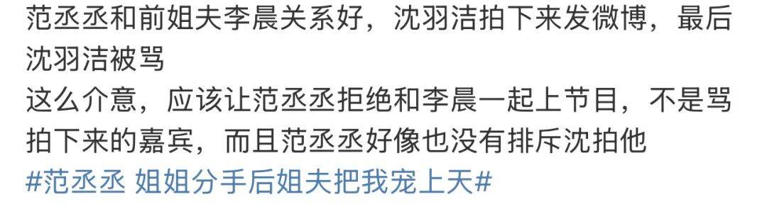 可能还夹杂着几条扯上李晨的吐槽:“出走内娱多年仍被两个男的蹭热度”、“自己弟弟和前男友那样看不懂好笑的点在哪”、“三人行不被爱的原来是范冰冰”...