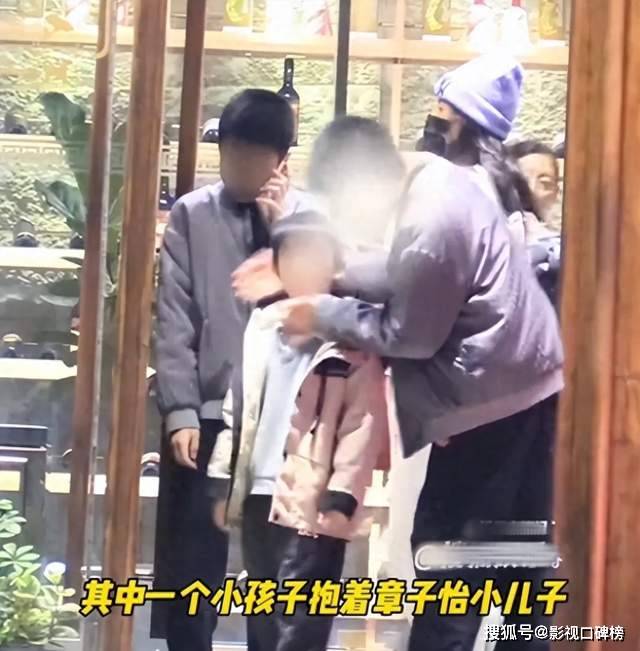 11月17日有网友拍摄到,章子怡带着一对儿女外吃烤的画面。离开时,一行人走出来。