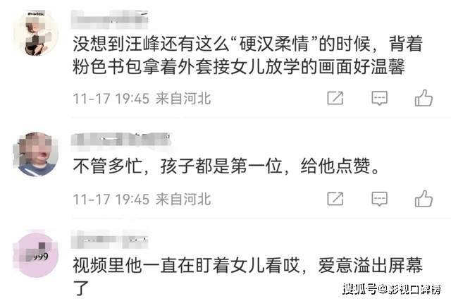 有网友表示:没想到汪峰还有这么“硬汉柔情”的时候,背着粉色书包,拿着外套接女儿放学的画面好温馨!愿意为女儿付出,这就是汪峰的加分项。