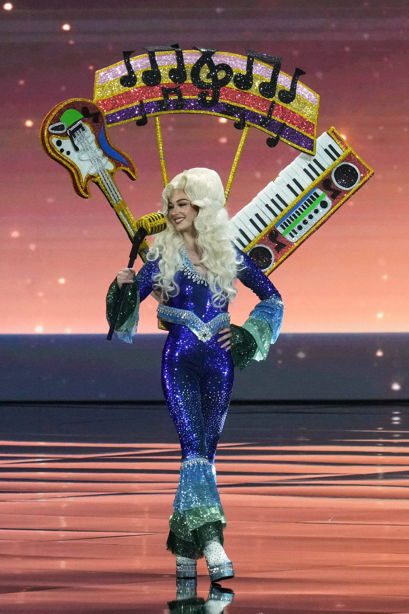 瑞典小姐丹妮拉·隆德奎斯特在环球小姐选美大赛上参加民族服装比赛。