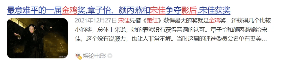 更让人迷惑的是,有传闻说当年不给章子怡二封金鸡,是因为金鸡有“卡二封”的不成文规定,可到了宋佳这儿,这规则直接失效。就算不选章子怡,颜丙燕哪里差了?