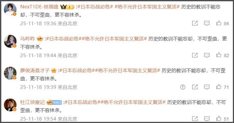 而泰籍华裔李紫婷也坚决表示不允许日本军国主义复活,历史的教训不容抹杀。此外,美依礼芽、矢野浩二表态坚持一个中国原则也得到央视新闻的点赞,可见中国对立场正确的日本艺人持欢迎态度。