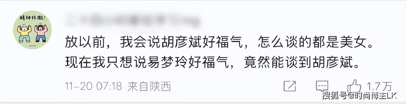 几乎清一色的网友认为,是易梦玲高攀了,竟然能谈到胡彦斌。
