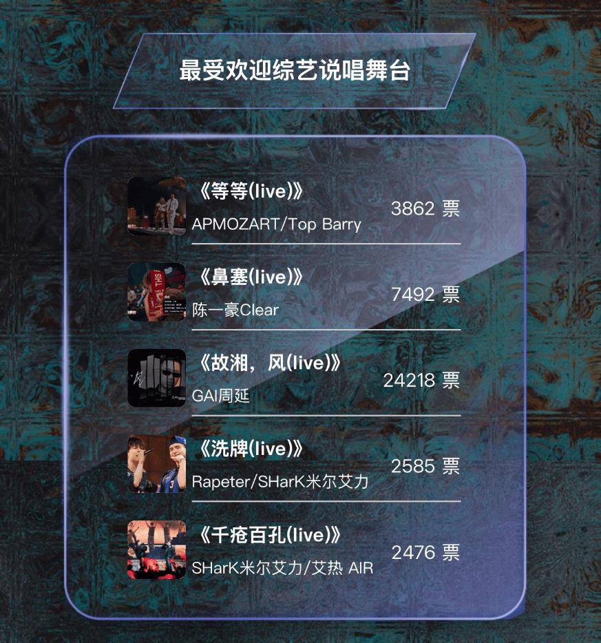 但如果要论年度Rapper或者最受欢迎歌手,那GAI一定是最没有质疑和悬念的。