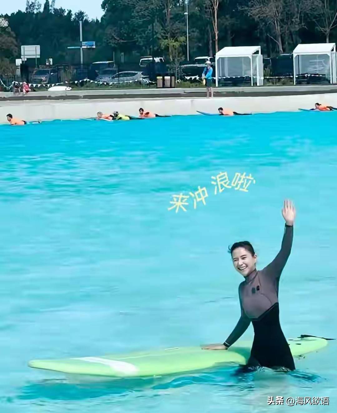 让人没想到的是,工作中干练的何超莲,在老公面前秒变小朋友,她换上泳衣去酒店的冲浪池玩水,好几次摔进水里,耳朵进了水就歪着头跺脚“倒水”,笨拙又可爱。