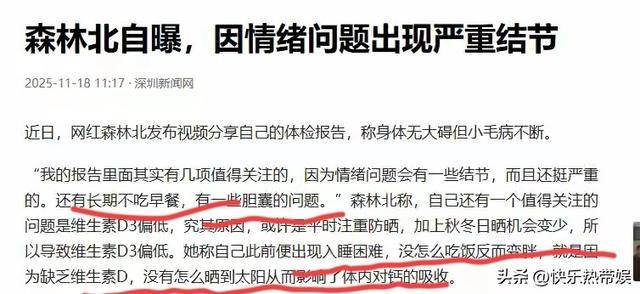 近日,汪峰小19岁女友森林北发布视频分享了自己的体检报告。报告看上去没有什么大问题,但是她却透露自己“小毛病”不断,到了中年,因为情绪问题,有一些结节,还挺严重的,需要注意。