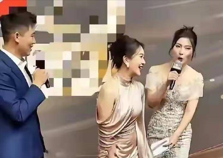左小青身穿一袭金色深V长裙,裙身缀满亮片,在灯光下格外耀眼。