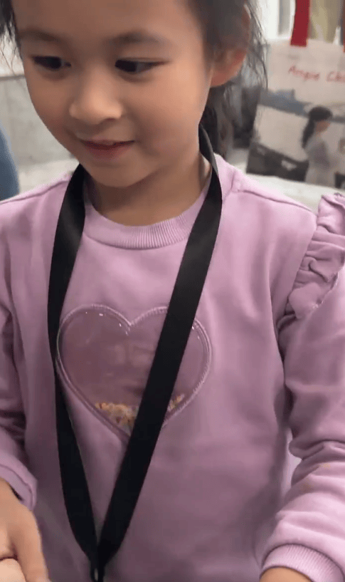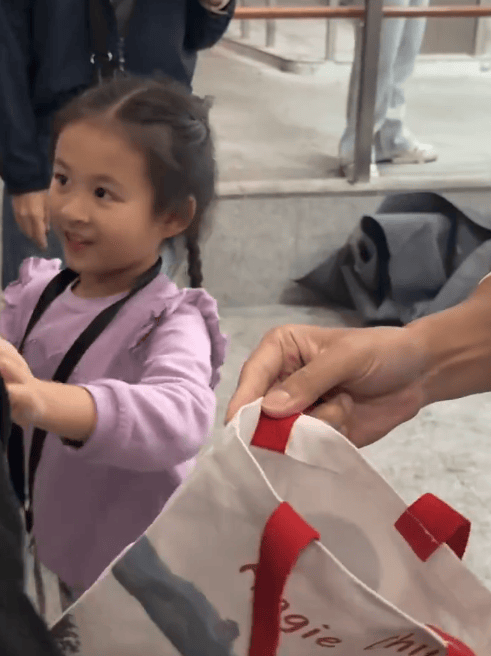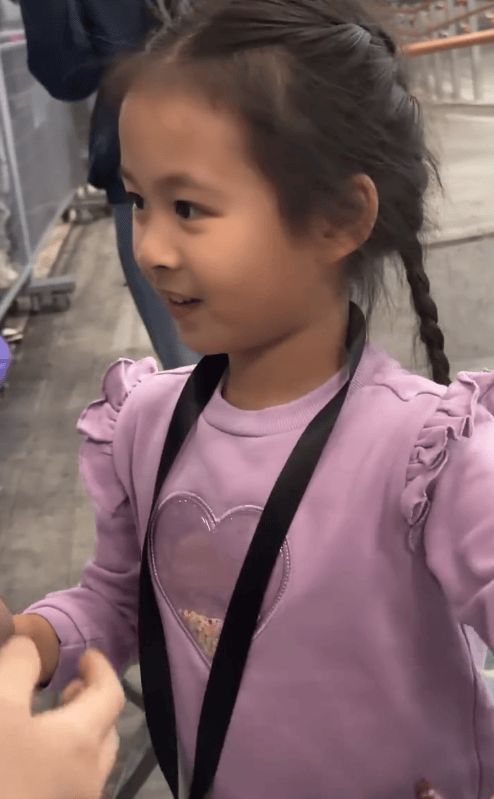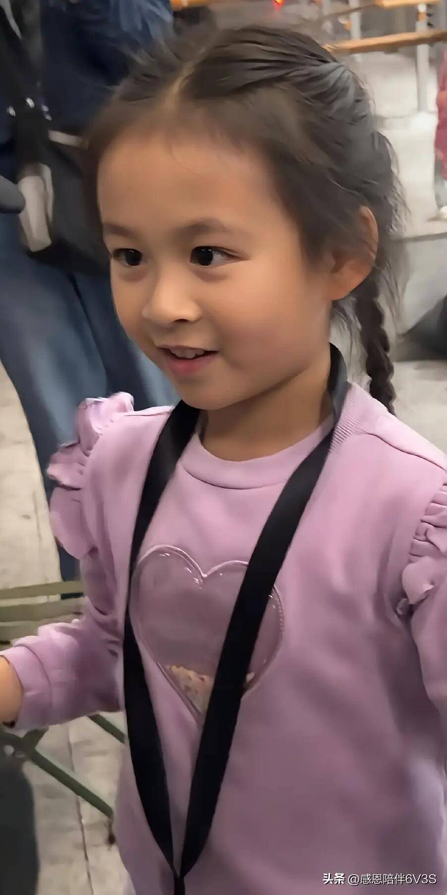 赵雅芝孙女扎着双麻花辫,可爱活泼。