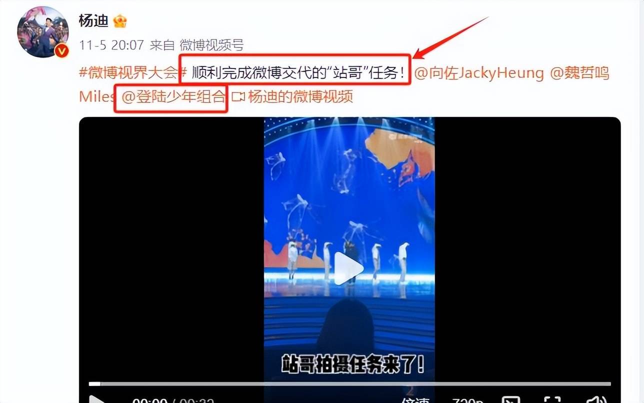 杨迪在微博视界大会上的直拍视频中,与男团成员们一起完整呈现了等你的回答这首歌的唱跳舞台。尽管他本人并未接受过专业舞蹈训练,但还是卖力地尝试,而这种敢于尝试的精神无疑令人敬佩。