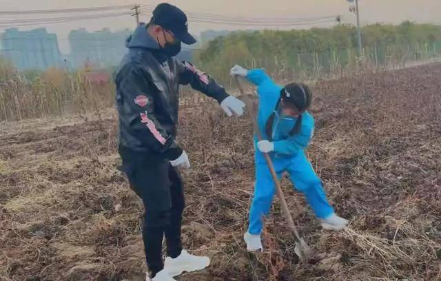 女儿挖累了,汪峰也挖几下,感觉不如女儿的动作熟练。