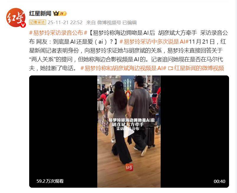 然而,这场恋情的后续发展,比偶像剧还跌宕起伏。次日,易梦玲本人亲自向媒体回应,笑着将视频定性为“是AI生成的”,并留下一句意味深长的“我也不知道怎么会这样”。对于恋情实质,她未置可否,却在被追问是否身在马尔代夫时,直接挂断了电话。