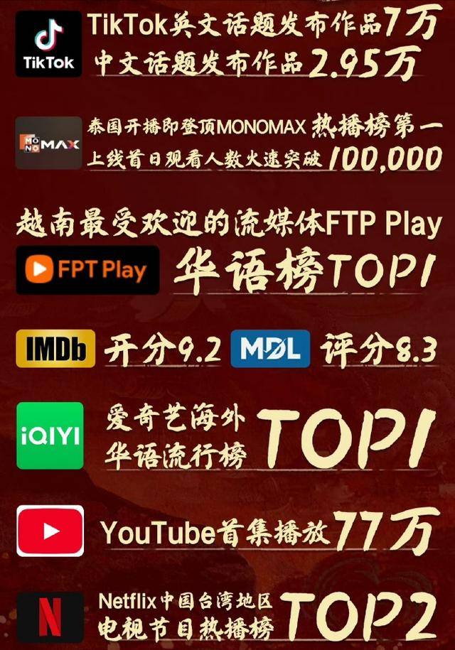 更绝的是海外,泰国上线首日观看破10万直接登顶,国外中剧榜断层第一。