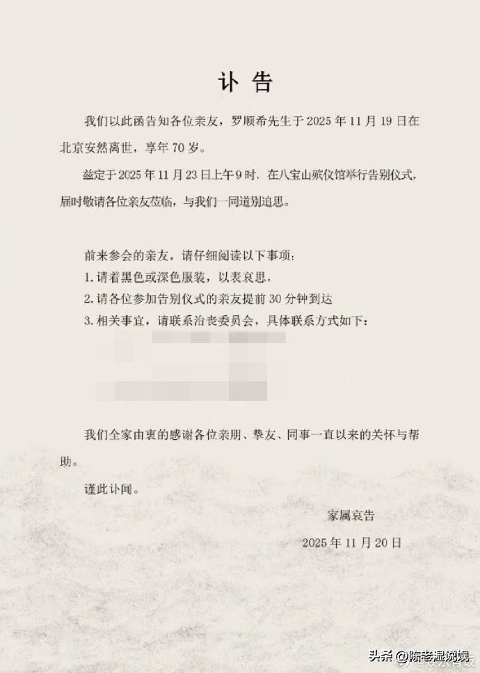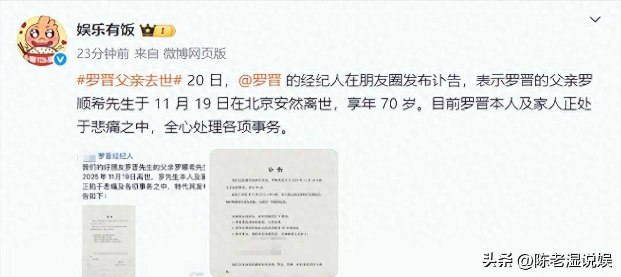 而在唐嫣和罗晋婚变传闻愈演愈烈时,网上有人爆出疑似是罗晋经纪人发出来的罗晋父亲离世的讣告。