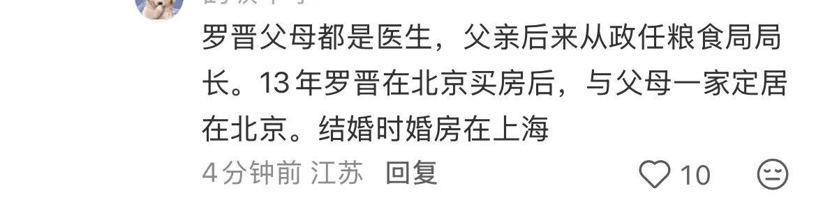 罗晋一直生活在北京,他考入了中国煤矿文工团,平时有上班和演出,而且在很多年前,罗晋就在北京买了房子,生活在北京。罗晋父母原本是江西宜春市铜鼓县人,夫妇俩都是医生,而且罗晋父亲后面还有升职,在当地很受人尊敬,罗晋还有三个姐姐。等父母退休后,他们就搬到了北京跟罗晋一起生活。