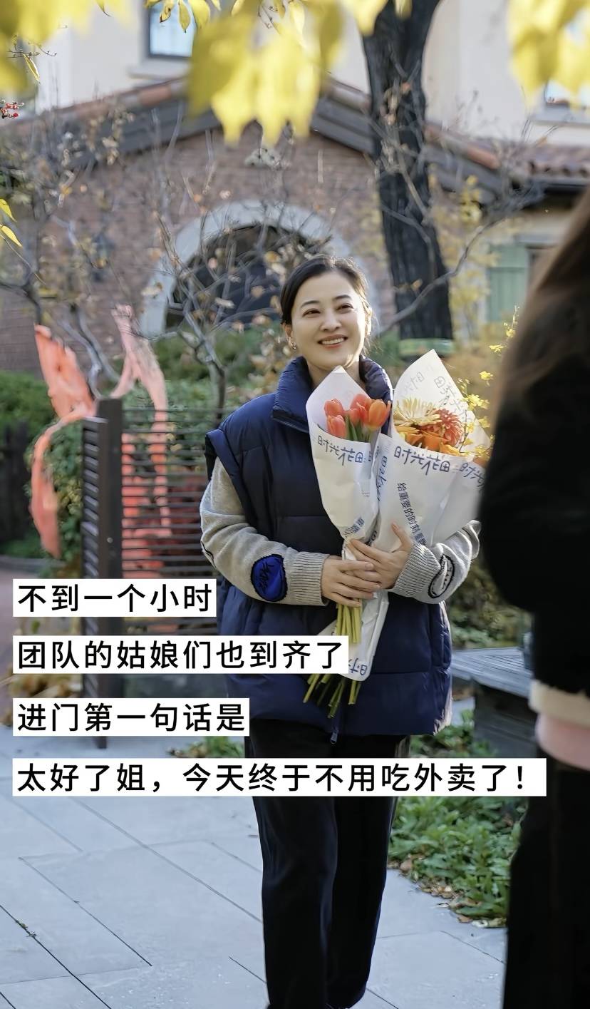 收到花束的梅婷,也是乐得合不拢嘴。姑娘 们都很开心,不仅是因为有大餐可以吃,更是因为不用吃外卖了。