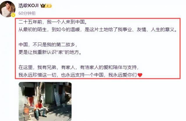 他还写道:来中国已经25年,这片土地让我重新理解了“家”的意义。我会珍惜这里的一切。