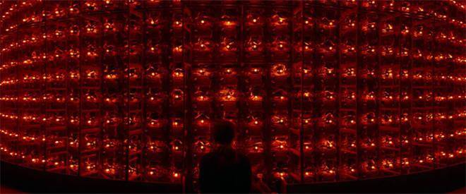 “迷魂者”的故事全部结束后,一群发着光亮的观众陆续走进如圣殿般的蜡烛剧院,伴随电影从放映到结束,剧院逐渐燃烧殆尽,观众也逐渐融化消失。