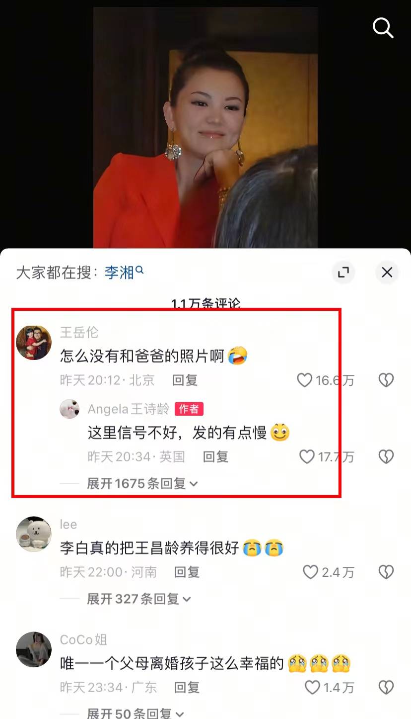 其实王诗龄晒出和爸爸的合照,只是爸爸没有露出头来,也只是晒了一张和妈妈的合照,而王岳伦不高兴了,留言问女儿,怎么没有和爸爸的照片啊,王诗龄回答这里信号不好,发的有点慢。