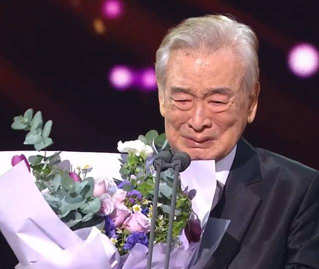 他2025年1月在KBS演技大奖上领奖,那时候已经90高龄了,台上走路晃晃悠悠,需要工作人员搀扶着上去。