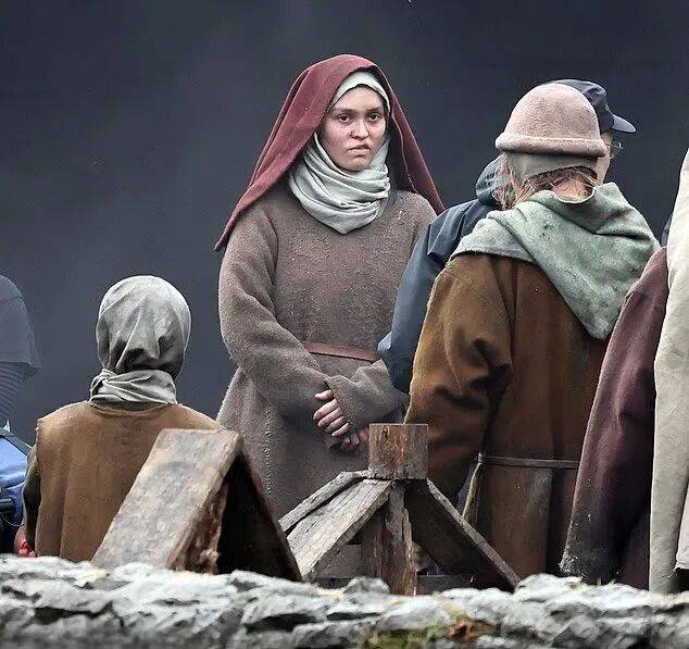 这部定于2026年圣诞档上映的这部13世纪背景的恐怖片,第一批剧照一经泄露,便上网上病毒式传播。照片中,Lily-Rose Depp 完全“面目全非”:她裹着粗糙的毛皮斗篷,脸上沾满泥土,头裹酒红色头巾,眼神中透着原始的恐惧与疲惫。