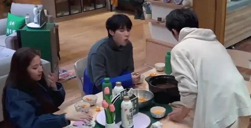 事情是这样的:宁静炖了一锅香喷喷的鸡汤,本想给大家暖暖胃。结果汤还没端上桌,朱丹就抢先当起了“食物分配官”——鸡腿留给弟弟们,翅尖分给女生,自己还“谦虚”地说吃点普通肉就行。