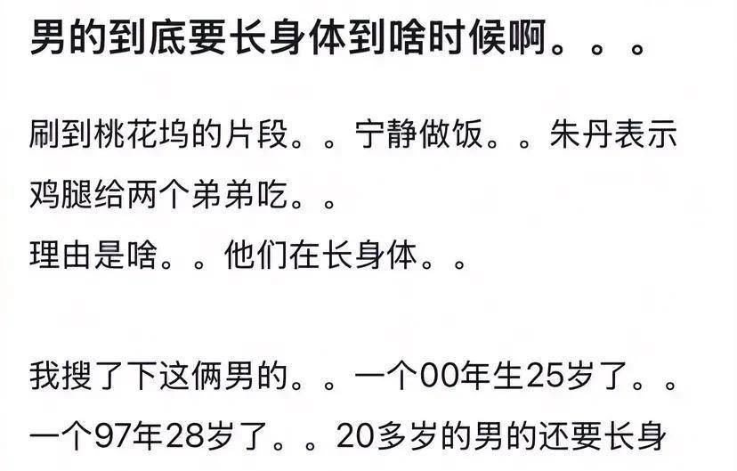 她居然还理直气壮地补充:“弟弟们正在长身体嘛!”拜托~两位弟弟一个25岁、一个28岁,这年纪还需要“发育”?反倒是年纪最小的欧阳娣娣还不到20岁,怎么没见你心疼她“长身体”?