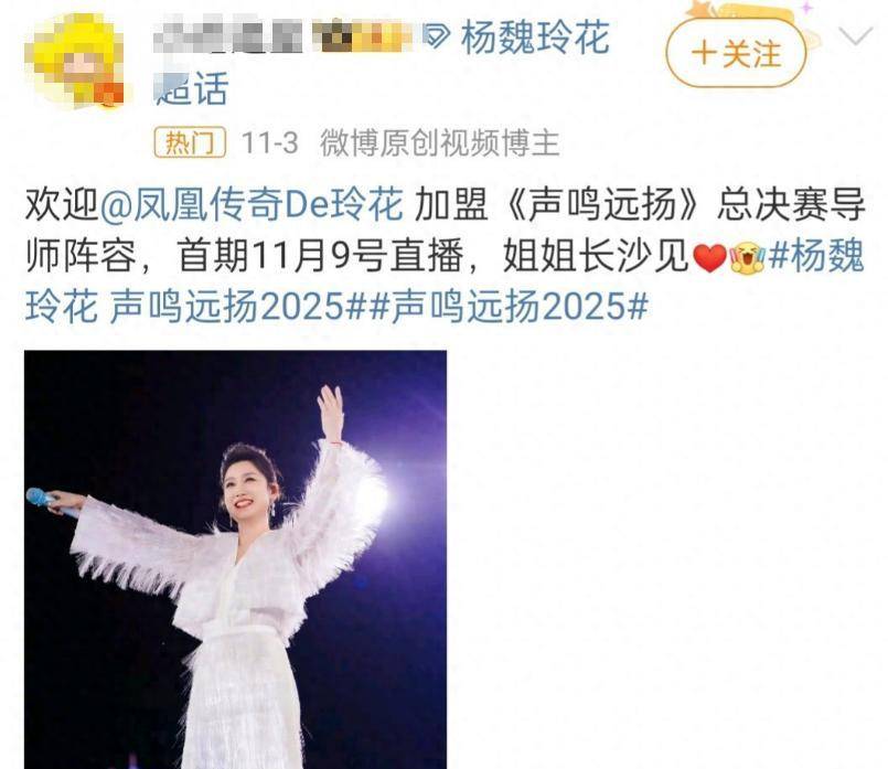 就在大家疯狂脑补之际,玲花却突然放出了大招!她正式宣布将以个人身份加盟现象级音乐综艺《声鸣远扬2025》,宣传照上她稳居C位,气场全开!