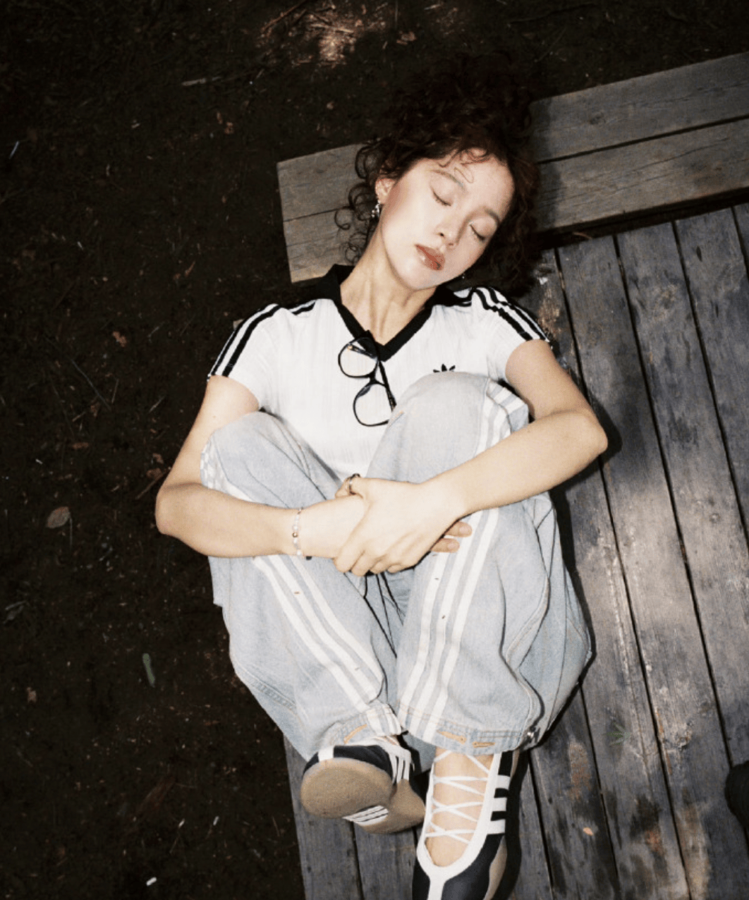 欧阳娜娜蓬松卷发搭配休闲单品的甜酷造型。