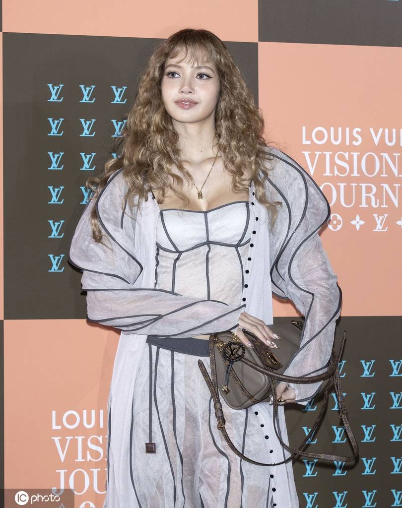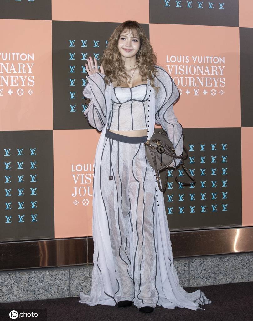 Lisa身穿LV 2026 春夏系列浅灰色宽肩网纱三件式套装亮相,搭配金色长卷发,宛如甜美芭比。
