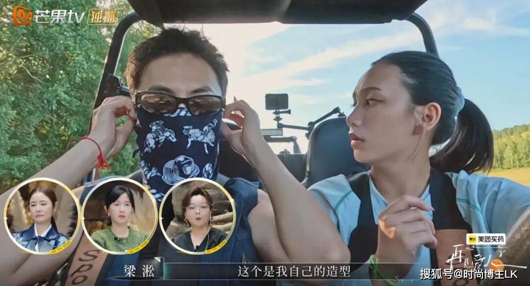 何美延和梁淞共同开沙地越野车,梁淞戴了头巾,护住了脸,