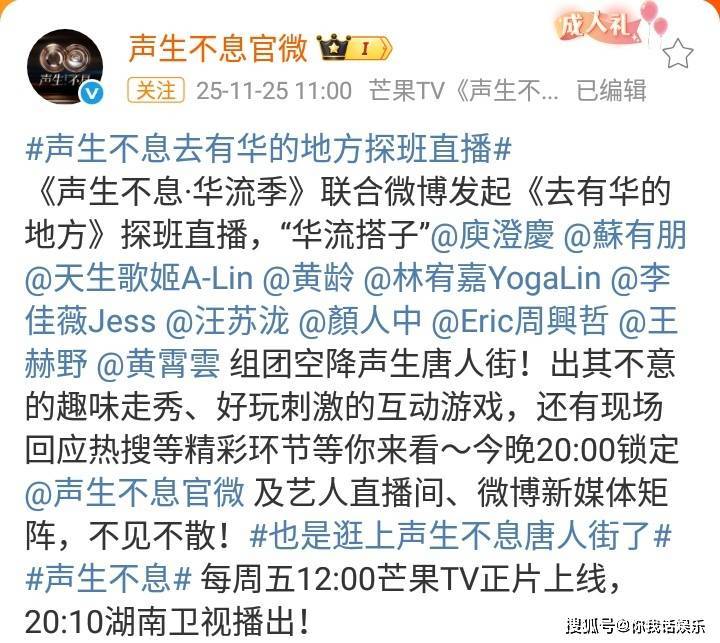 所以说,《声生不息·华流季》这节目,它不像有些综艺那样追求瞬间的炸裂,它更像一个耐心的编织者,用一首首刻进DNA里的旋律,用歌手们真诚的演绎,把散落的记忆珠串连成链。它让我们在喧嚣快速的时代里,有机会停下来,听听旧时光的声音,再看看那些陪伴我们成长的熟悉面孔,如今依然在发光。它告诉我们,好东西永远不会过时,真正的感动就像种子,一旦种下,总会在某个时刻,随着熟悉的旋律,再次破土发芽,开出新的花来。这大概就是“声生不息”最美的含义——声音响起,生命与情感的共鸣,便永不停歇。