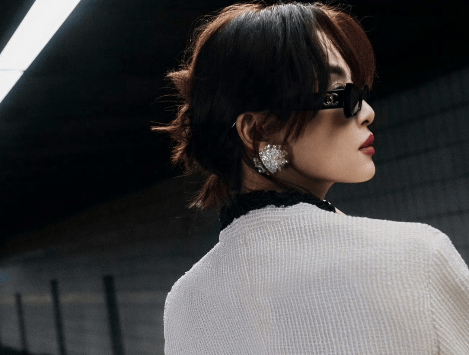 辛芷蕾抬手持墨镜,气场慵懒又强势。