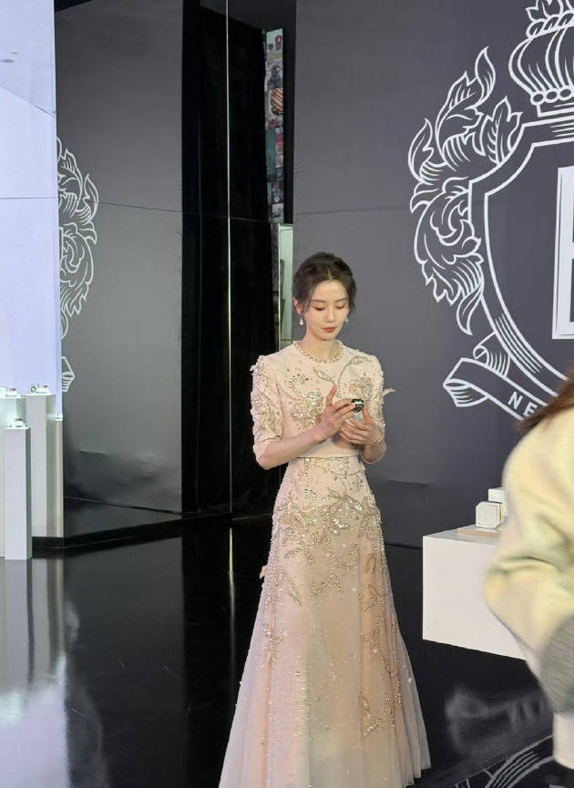 刘诗诗身穿粉金色长裙勾勒好身材 浅浅微笑大气迷人