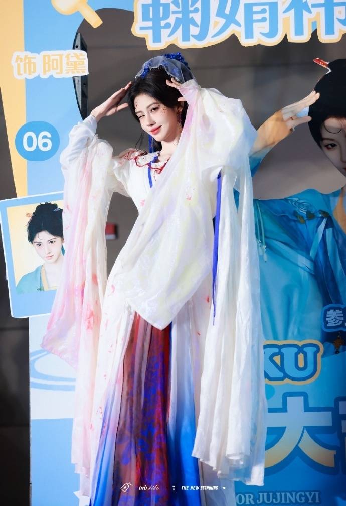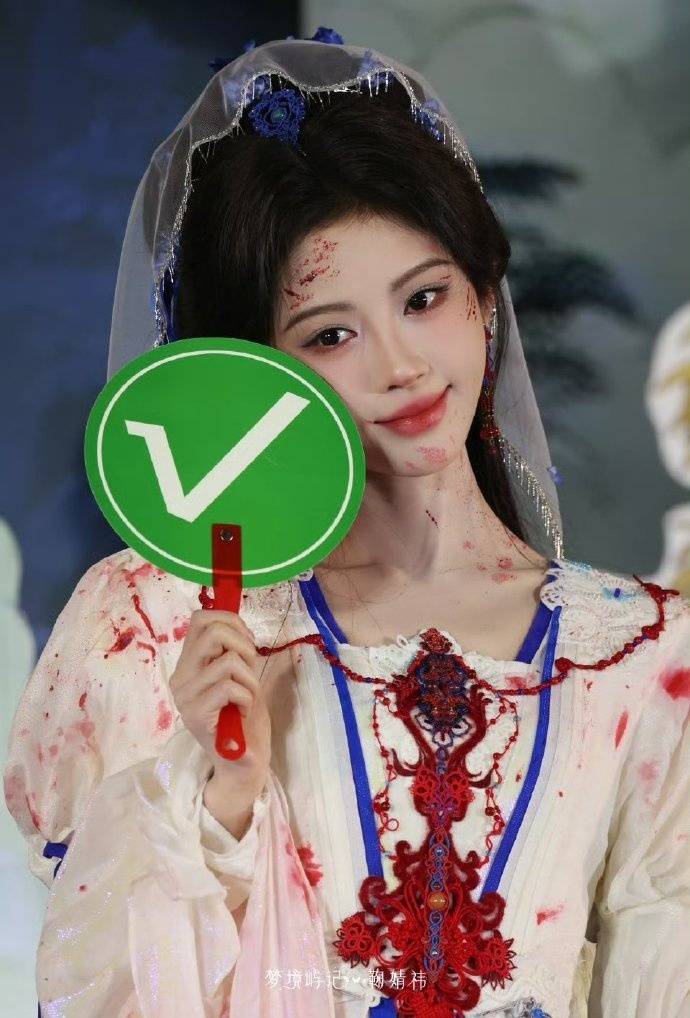 鞠婧祎战损妆现身又美又灵 双手比耶和粉丝互动好甜