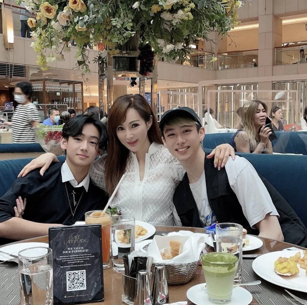 而罗霖身旁的大儿子则是穿着毕业袍,手捧一束鲜花,他的身高已经明显超过母亲,染了一头金色的头发,脸型看起来和罗霖极为相似,想来也是继承了母亲的高颜值。