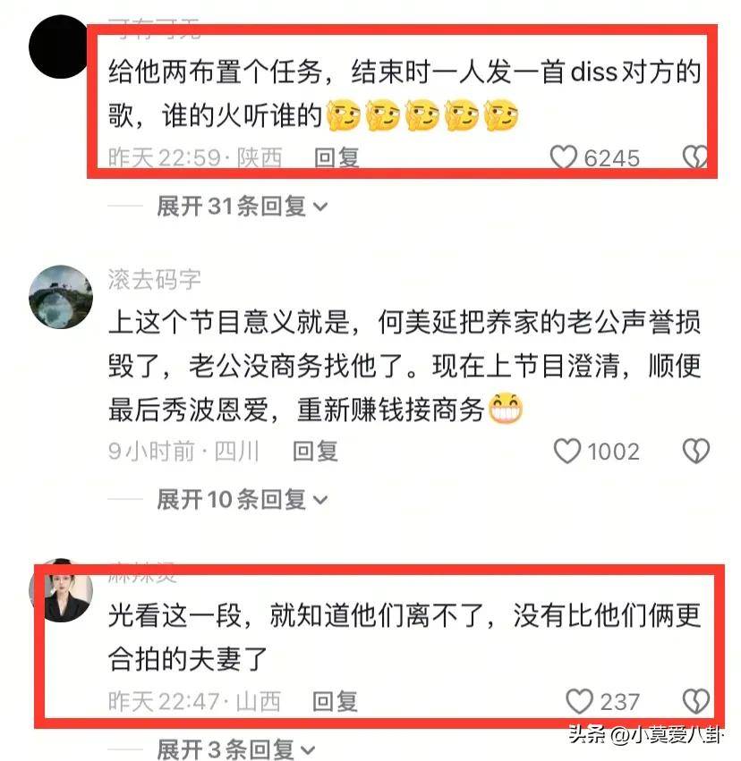 出人意料的是,这对看似水火不容的夫妻却被观众认定最难分开。网友的精妙评论令人拍案叫绝: