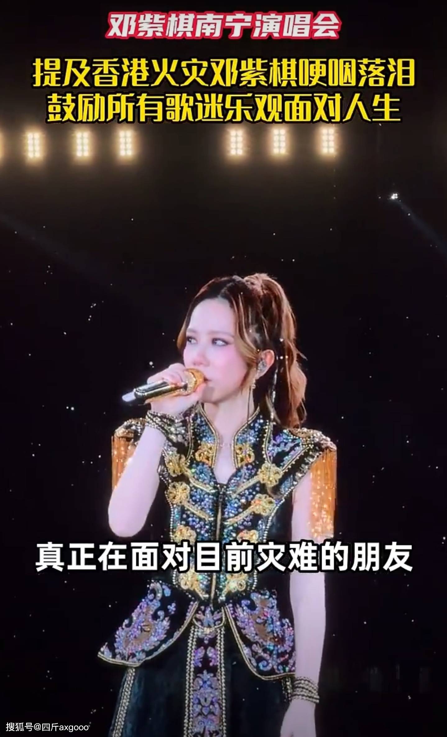 在谈到近日香港致命火灾事故时,邓紫棋数次哽咽,悄悄抹着眼角的泪水,一个劲跟粉丝念叨平安。