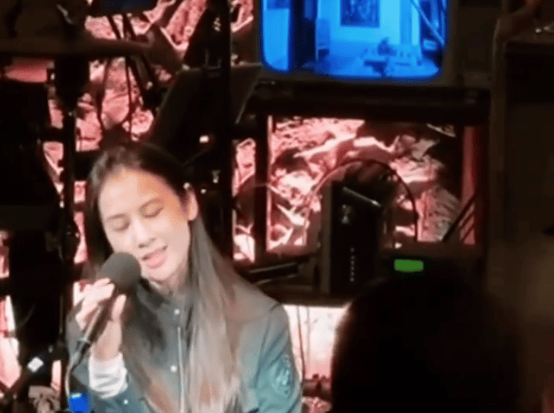 黄圣依沉浸在自己的歌声中,松弛感拉满。