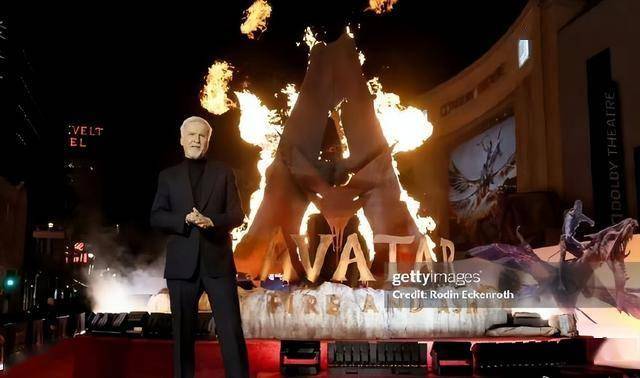 这样的猜测还是比较靠谱的,我们看下12月1日《阿凡达3》在洛杉矶举办的首映礼,最核心的环节就是火,尤其是走红毯时,导演主演都在燃烧着熊熊大火的电影宣传场景前留了影,并且制作成了海报。