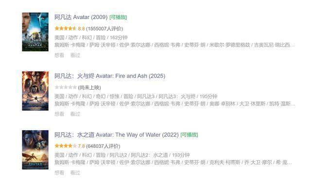 《阿凡达3》IMDb评分:7.3分(还没有公开上映)。