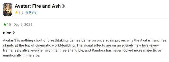 《阿凡达3》的口碑是在洛杉矶首映后解禁的,IMDb评分系列最低,口碑评论也呈现极端的两极分化。