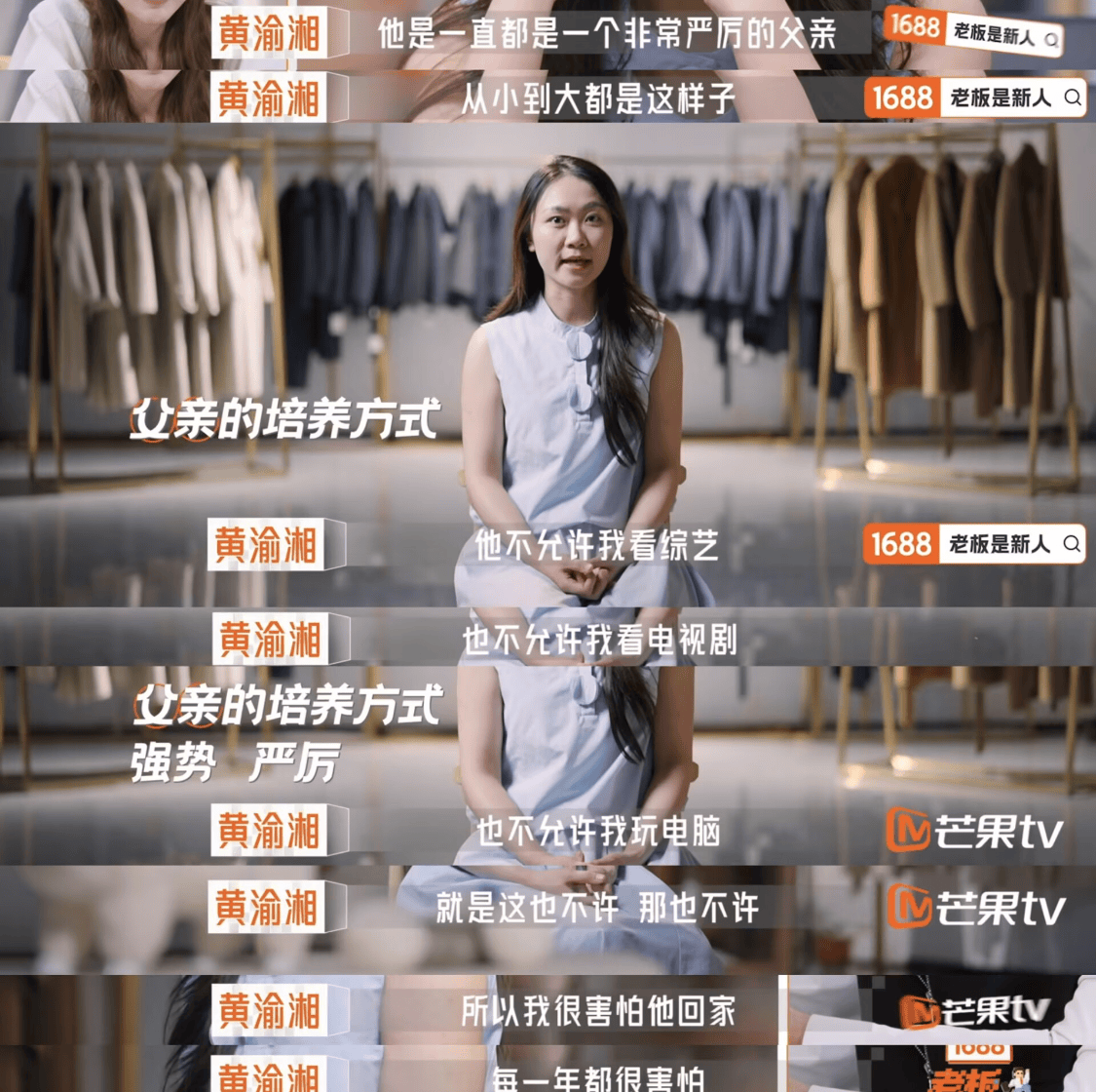 这和他对女儿的培养是一样的,黄渝湘说:我爸不让我看综艺看电视。