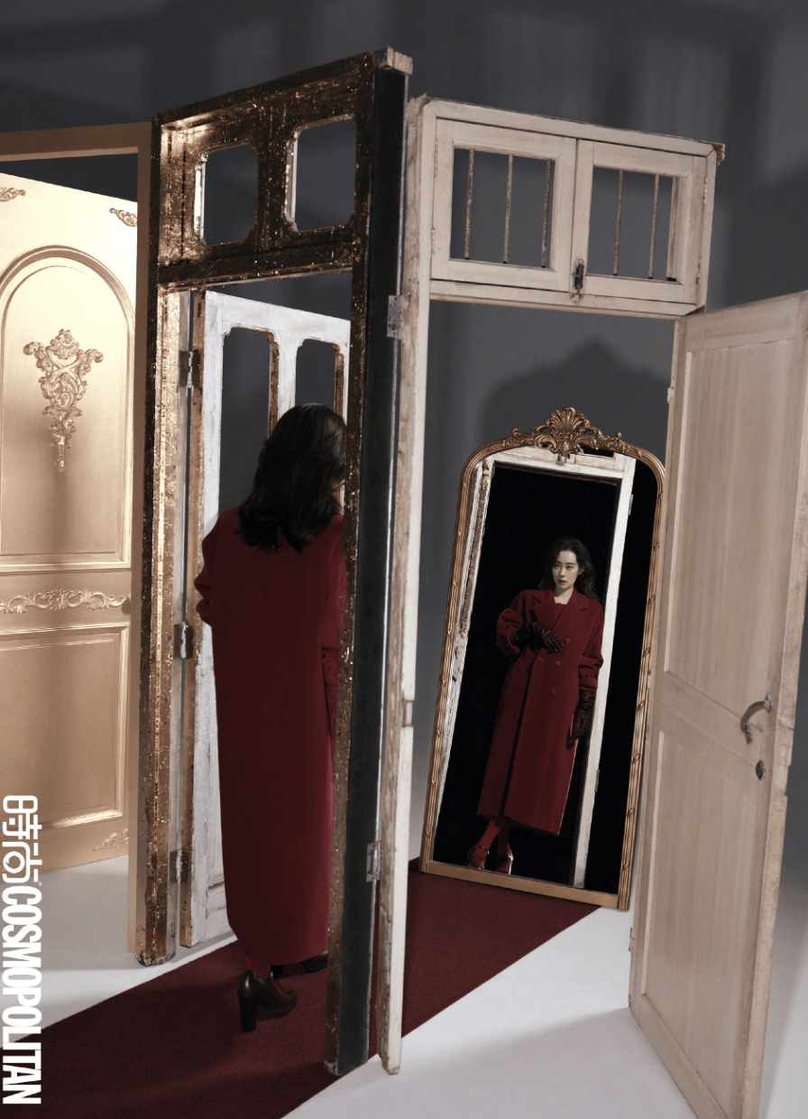 张小斐她的长发与暗纹装饰交织,突破既定印象。