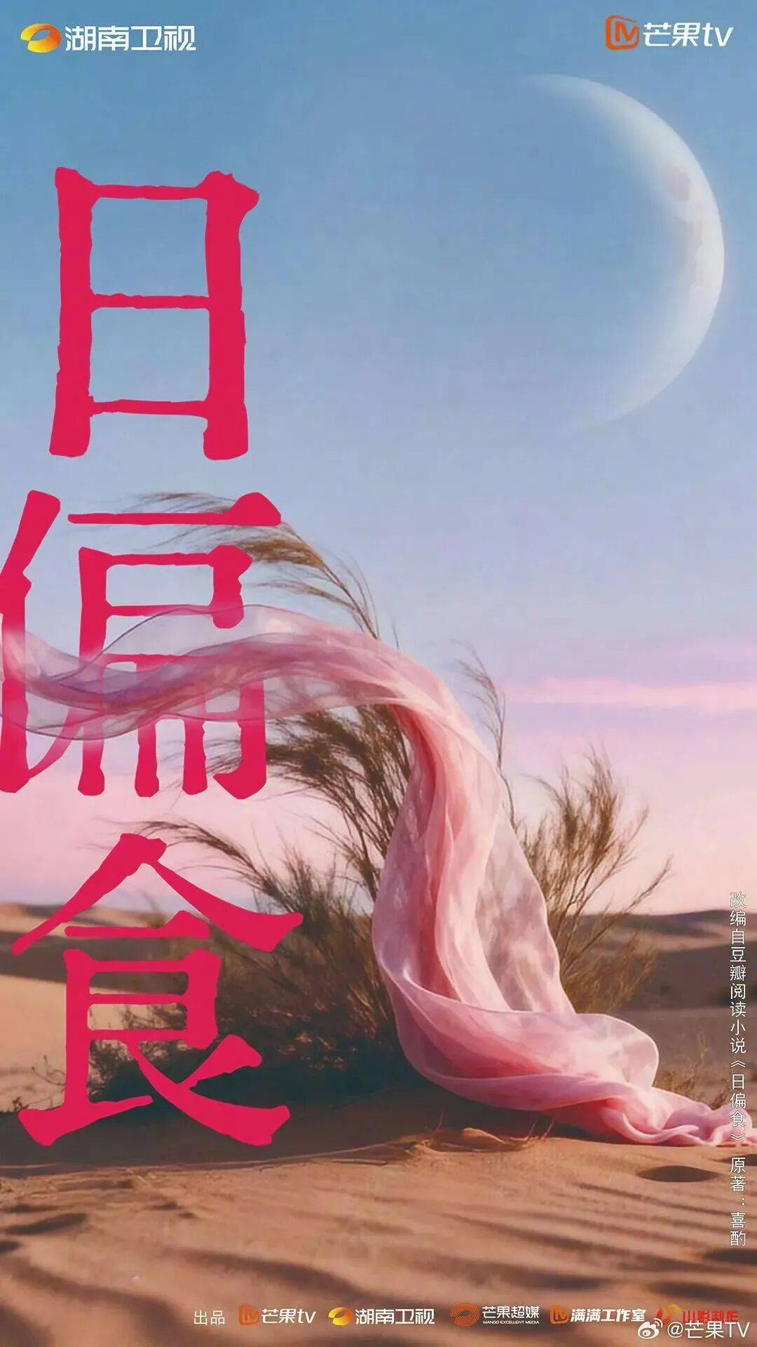 《日偏食》根据豆瓣阅读作者喜酌的同你名小说改编,讲述网红作家薛京采风偶遇前任女友哈月,两个“嘴硬王者”开启相爱相杀模式,重启一段浪漫的西北爱情。由芒果TV、湖南卫视、芒果超媒、满满工作室、山影制作出品。