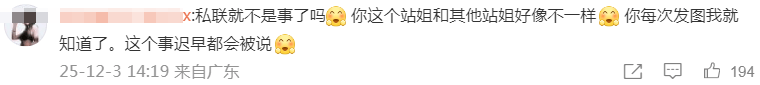 事儿就是这么些事儿,危险世界看似在控诉另一位站姐,实际矛头也指向了工作室,“为什么我们问就是非公开行程被冷对待,无人及你却能带着她一帮朋友过去”、“其他站子是低人一等吗”。